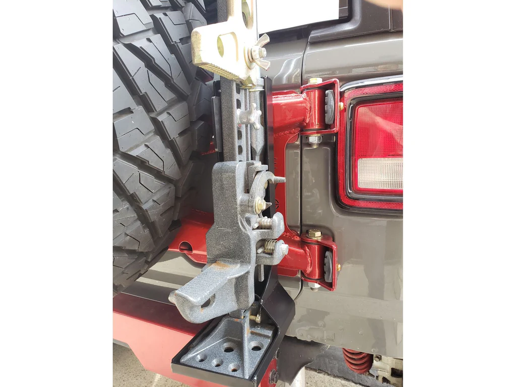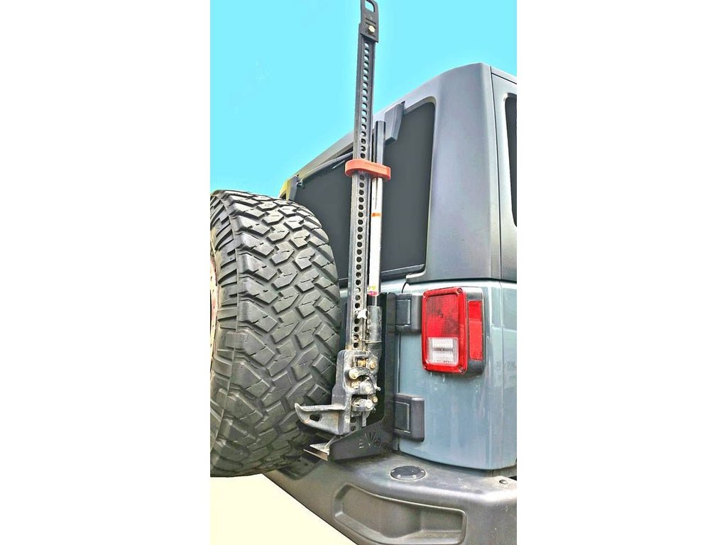 2007+ Jeep Wrangler JK/JKU and 2018+ JL/JLU. 1/8” Boxed Welded Steel Construction. Powdercoated black for Clean Finish and Corrosion Prevention. Integrated CB Antenna/ Trail Flag Mount. Secure Hand Screw for Easy Install and Removal of Hi-Lift Jack. Easy Install. The EVO MFG Jeep JK Hi-Lift Jack Tailgate Mount has a conveniently integrated antenna/ trail flag mount. Works with the OE tire carrier, EVO MFG Tire Carrier, and most aftermarket bumpers.