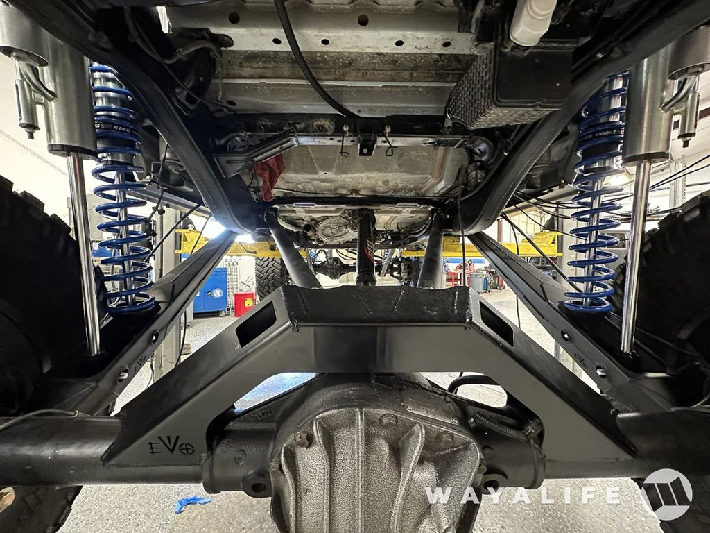 Rear: 2.5 Inch Coilover, 3.0 Inch Bypass, Air Bump Trailing Arm System. 22 Inch Wheel Travel