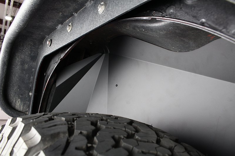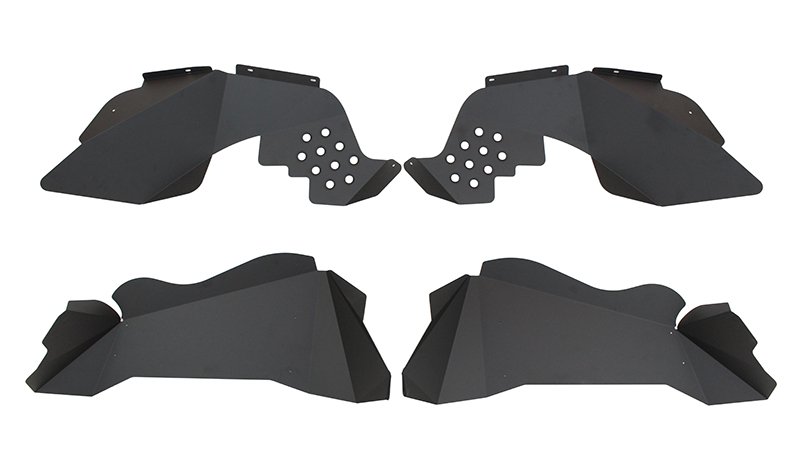 If you have Tube Fenders, you need a set of Aluminum Inner Fenders to finish the look. Once installed these offer protection from rocks and debris entering the engine compartment. These are stamped from Aluminum then powder coated black.