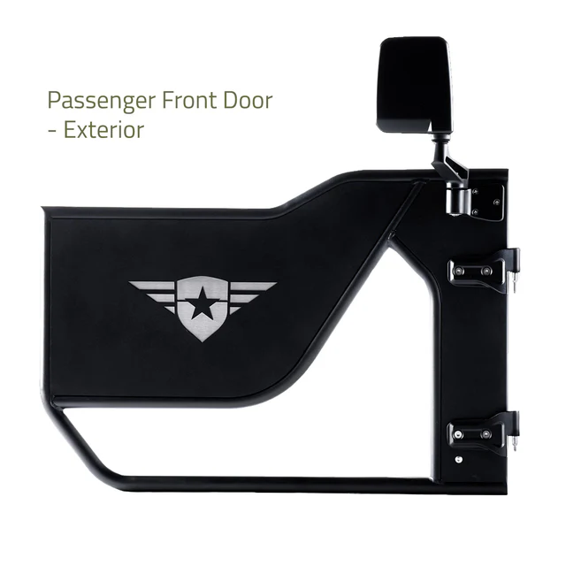 Each set includes OE-style hinges and door limiting straps, ensuring a secure and precise fit without the hassle of modifications. The removable logo-backing allows for custom color personalization, so you can match your Jeep’s unique look.