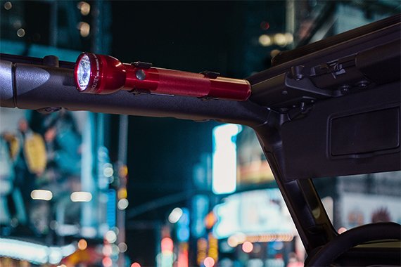 Mount your flashlight inside your Jeep and stop allowing it to roll around on the floor or make a ton of noise while awkwardly sitting in the cup holder.