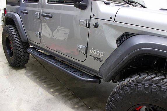 These mount to the underside of the Jeep using 3 mounting locations and provide you with protection on the trail and a step to help the family get into your Jeep.