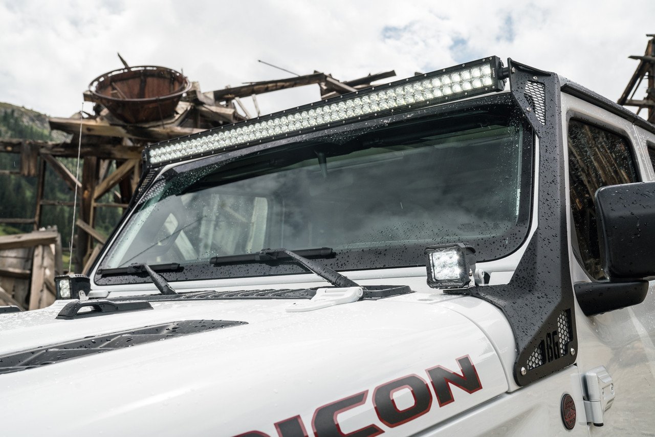 - Mounts 50″ straight light bar across the top of your Jeep JT