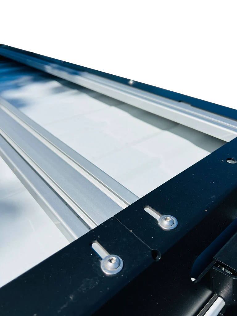 Flat upper platform gives unlimited options for carrying capacity and 5 T-Slot left to right extruded aluminum crossbars offer optimal locating of tie down positions.