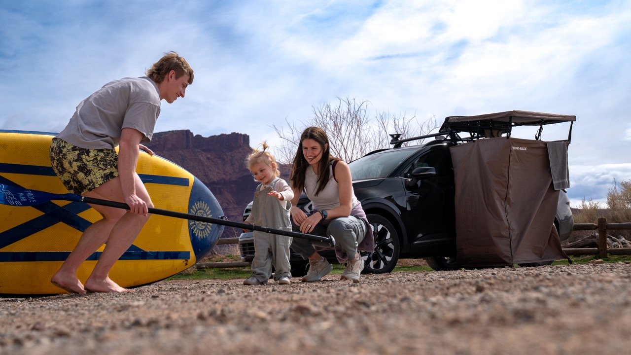- The Shower Tent is 1.1 m/43″ long when packed and extends 1m/39″ from the vehicle when deployed. It includes storage pockets, towel hanger and roll back roof for your convenience.
